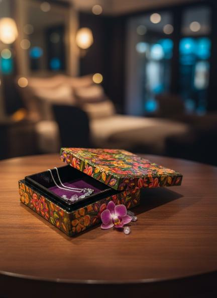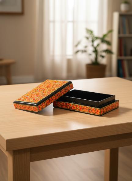 A beautifully hand-painted flat box designed to store essentials in style. Whether used for jewellery, stationery, documents, or keepsakes, this box adds a luxurious artistic element to any space. Its fine detailing and premium craftsmanship make it a standout storage piece perfect for home décor or gifting.