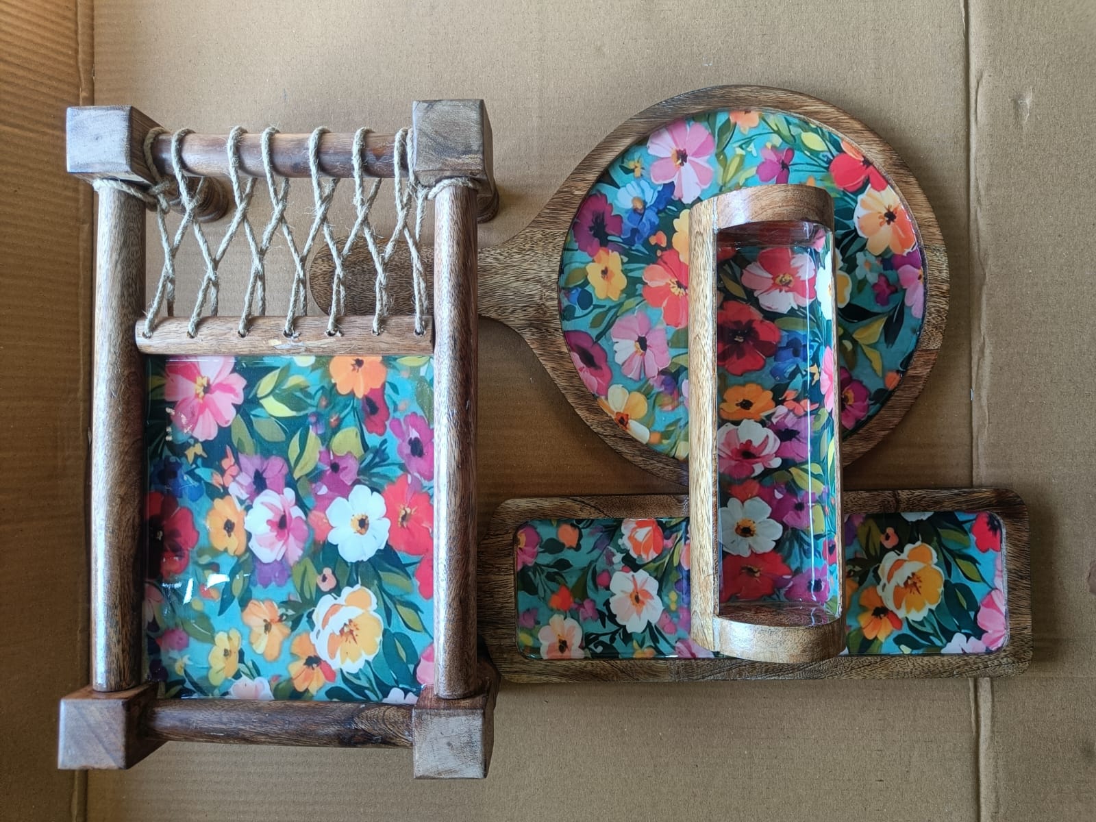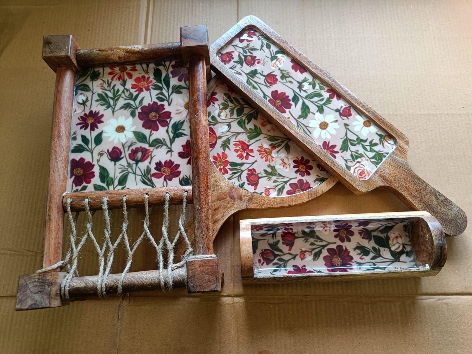 Inspired by traditional charpai designs, this miniature wooden khatiya set brings rustic warmth and cultural elegance to your decor. Finished with colorful surfaces and handcrafted detailing, it reflects timeless Indian craftsmanship.