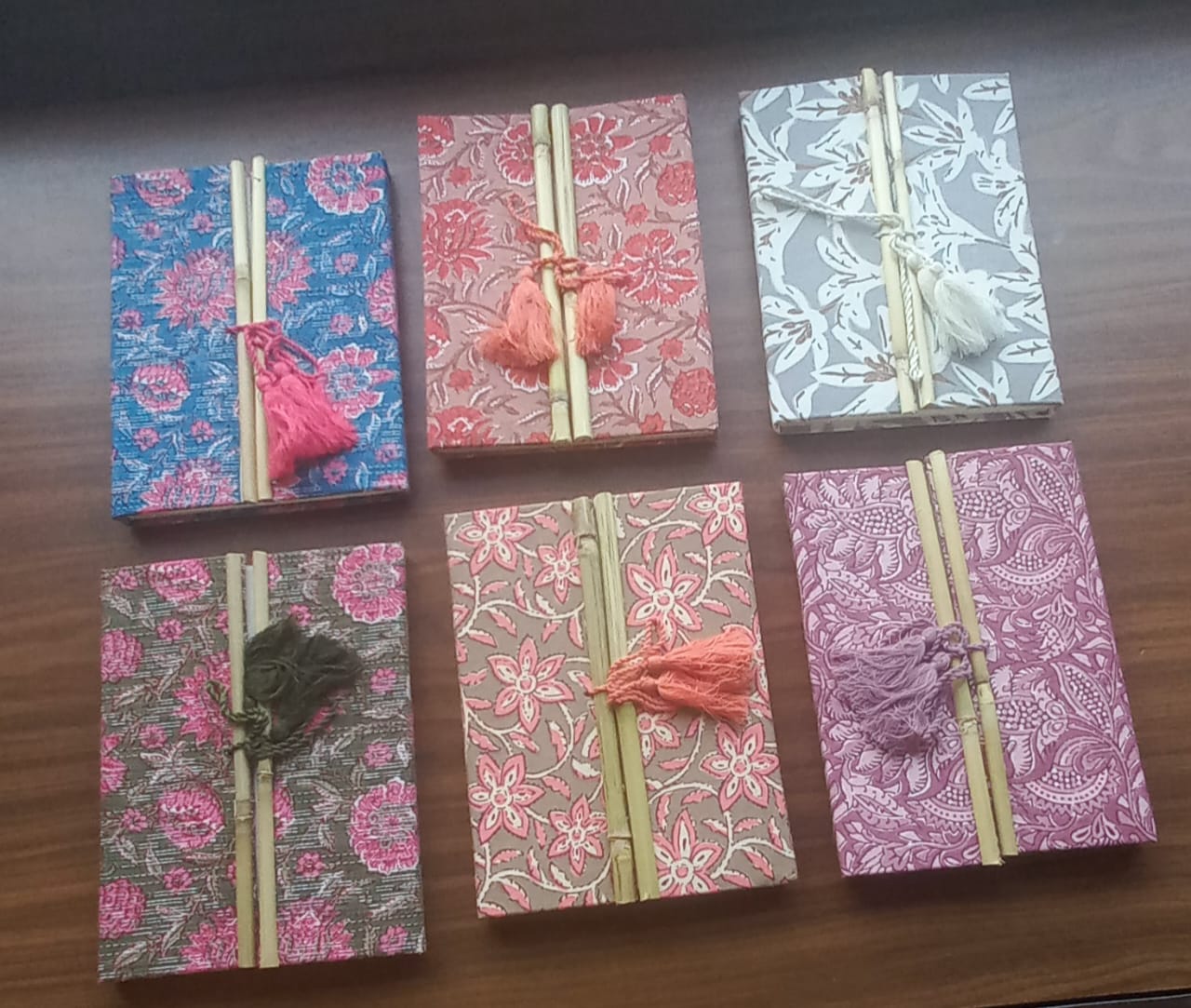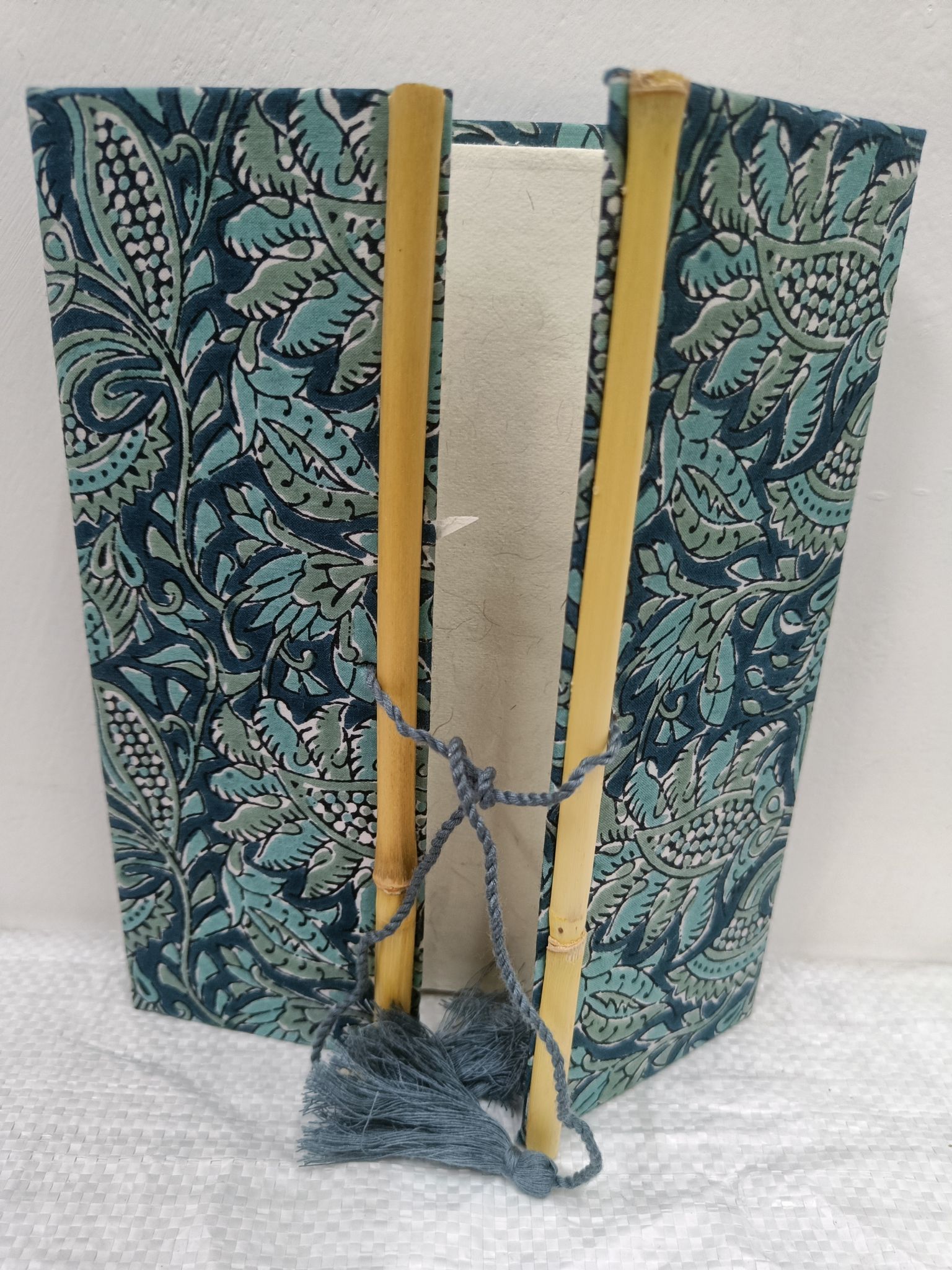 This Medium Handcrafted Diary is designed for those who love writing without carrying something bulky. Wrapped in beautifully printed fabric and finished with bamboo detailing, it’s both elegant and practical.